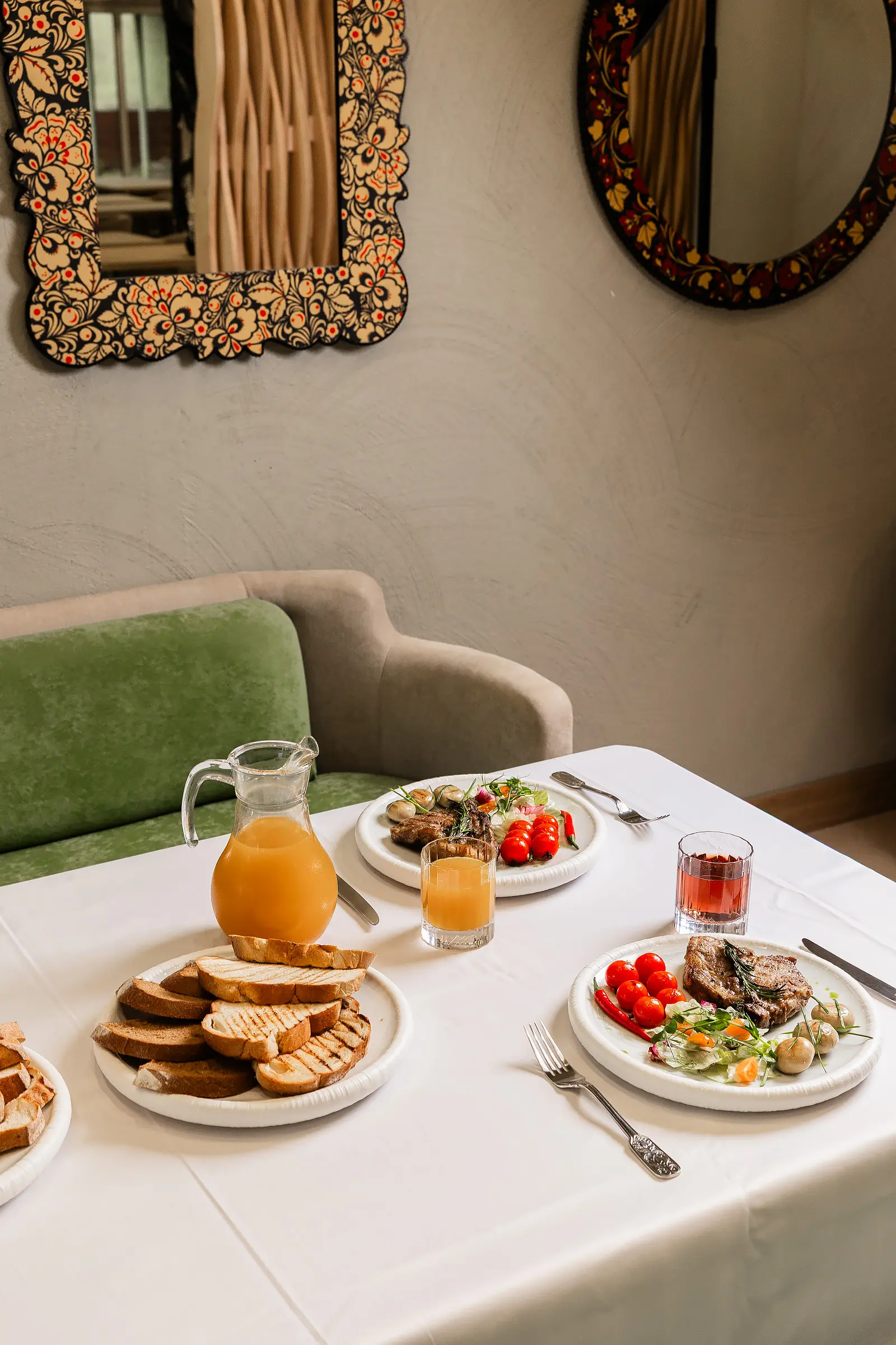 В нашем основном меню — любимые блюда: ароматные щи и борщ, рассыпчатая гречка и картофель с грибами, сочные котлеты и запеканки, свежие салаты и румяные блины.